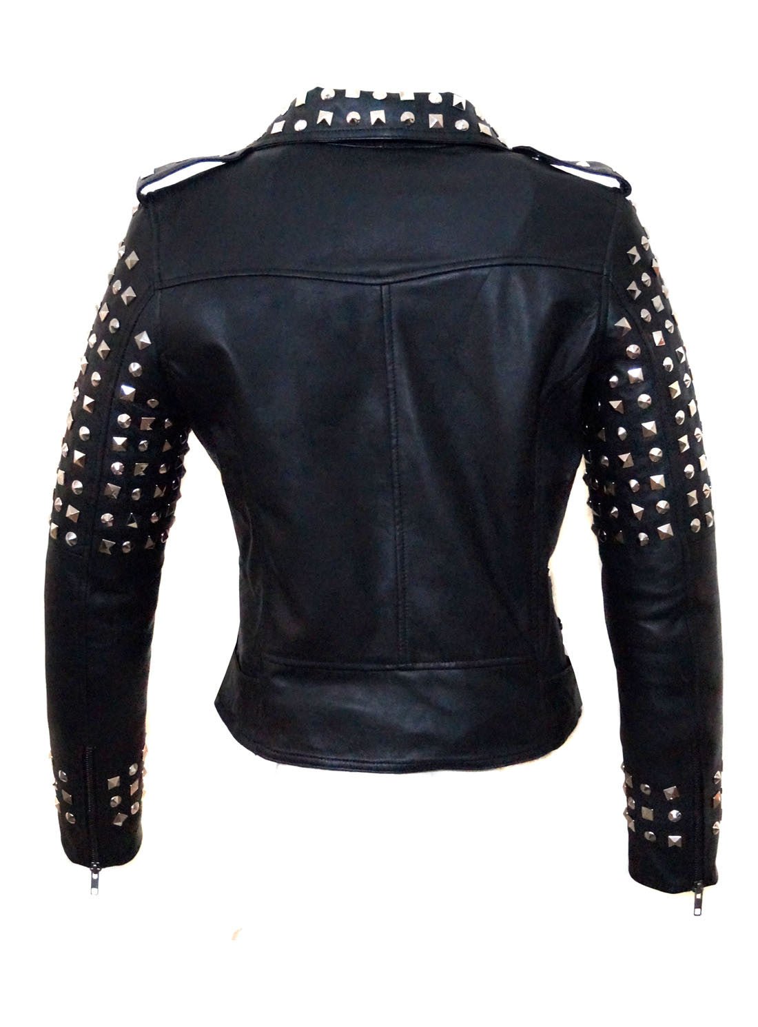 Leather Motorcycle Biker Women Jacket is styled with rivet dual type studs fixed on Leather front, leather Sleeves, Leather Lapels.