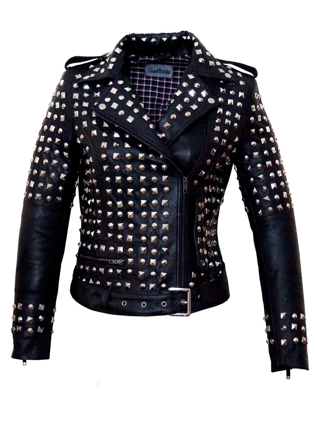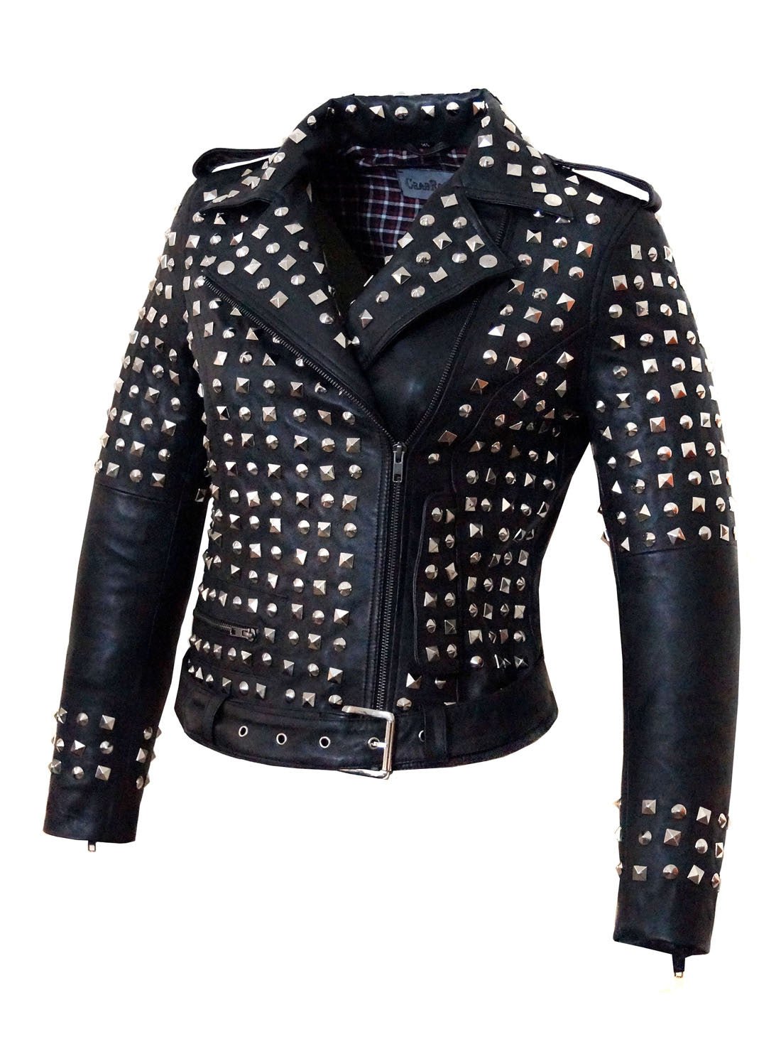 Leather Multi Studded Motorcycle Biker Woman Jacket is designed multi studded rivets jacket.