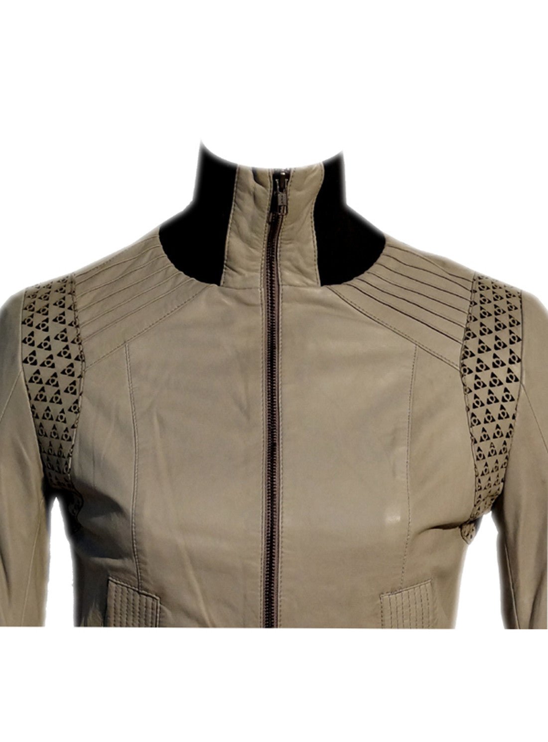 Leather Washed Perforated Women Bomber Blouson Leather Jacket. Bomber Jacket is styled with Perforation at the armholes. Yokes are styled with pin tuck stitches. Leather Bomber Jacket is styled with Stylish perforation at the front and back panel. Multi stitched Pocket is styled on the bomber jacket.